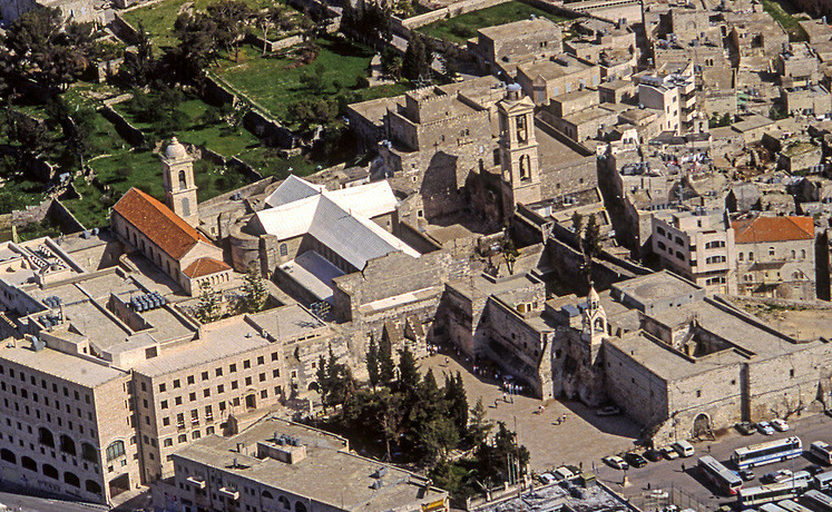 An aerial photo of the Church of the Nativity in Bethlehem. Photo: Larry Koester / Flickr / CC BY 2.0