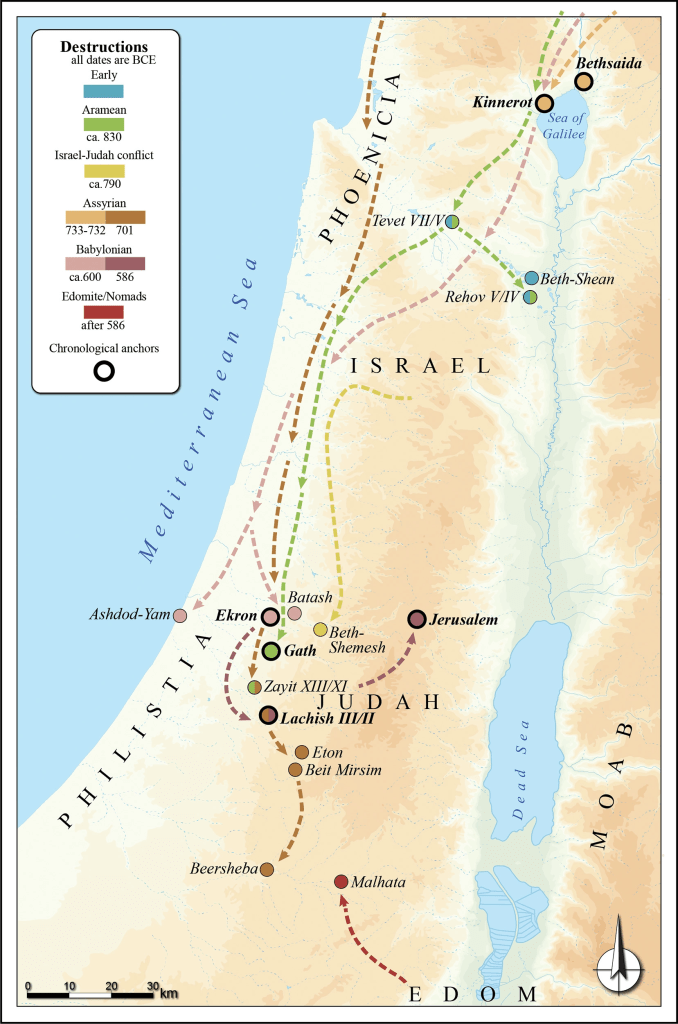 A new paleomagnetic study published in the Proceedings of the National Academy of Sciences (PNAS) has helped to clarify the dates of destruction at various Iron Age sites in Israel. The study, entitled, “Reconstructing biblical military campaigns using geomagnetic field data” was authored by Yoav Vaknin, his PhD advisors, and numerous archaeologists, including Amihai Mazar, Aren Maier, Yosef Garfinkel, Rami Arav, Avraham Faust, Ron Tappy, and Seymour Gitin. Paleomagnetics studies the ferromagnetic particles in objects that have been heated at high temperatures, such as in a pottery kiln or in a layer destroyed by fire, to determine the signature of the magnetic field at the time of heating. The earth’s magnetosphere fluctuates, and researchers have spent the past decade reconstructing the earth’s magnetic field by analyzing hundreds of known, datable objects. In their new study, the authors used the data from 21 destruction layers at 17 sites in Israel to determine when the settlements were destroyed. They claim that their research has helped to settle the debate around whether Beth She’an was destroyed by Pharaoh Shishak (Sheshonq I) in the tenth century BC or Hazael, the king of Damascus in the ninth century BC. The paleomagnetic data from burnt bricks in destroyed buildings at Beth She’an does not align with the time of Hazael, but is compatible with the time of Shishak. Another example comes from Beth Shemesh, which the paleomagnetic data suggests was destroyed at the beginning of the 8th century BC. Thsi does not correspond to any known foreign invasion, but does lend support to the biblical text, which describes a battle between Judah and Israel around this time: “So Jehoash king of Israel went up, and he and Amaziah king of Judah faced one another in battle at Beth-Shemesh, which belongs to Judah. And Judah was defeated by Israel, and every man fled to his home” (2 Kings 14:11-12). Vaknin believes paleomagnetic data can be used to complement radiocarbon data and ceramic typology to more accurately date artifacts and sites in Israel, particularly during the Iron Age.